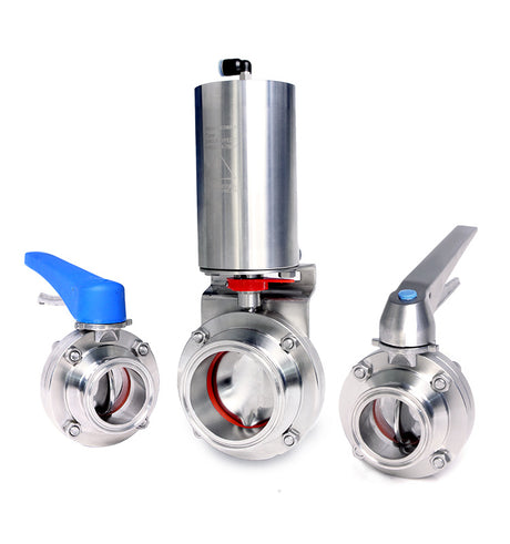 Válvula de mariposa sanitaria de tres piezas de acero inoxidable 316 de 2"