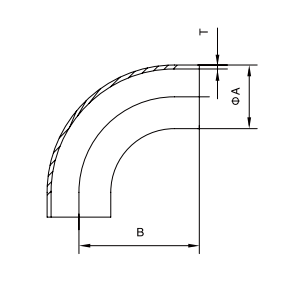 Buttweld 90° elbows are available in both 304 and 316L stainless steel alloy. The product is manufactured in accordance to 3A Standards for sanitary-grade line process equipment in both the food and beverage industries. Outside diameter is available from 1/2 inch all the way to 6 inches. Butt welding creates a permanent connection that cannot be easily cleaned in place. Tangents allow for additional room to accomplish welding in place.