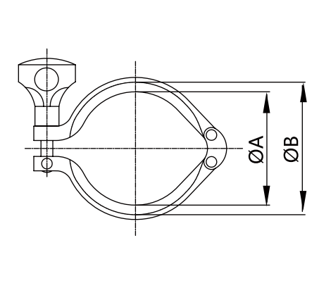 The double pin heavy duty clamp with a wingnut is made from Grade 304 stainless steel alloy. It is used to join two separate tri-clamp ends to one another and allows for more flexibility than the single-pin heavy duty clamp. A tri-clamp rubber gasket should be placed between the two flange ends to ensure proper fit and secure connection. Do not over tighten wing-nut as this may damage product.